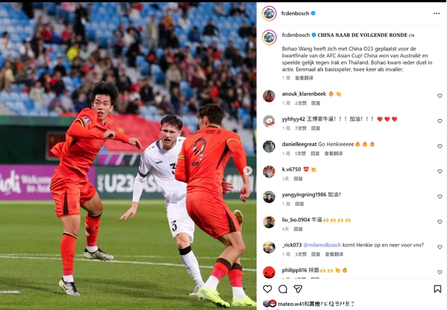 王博豪太有牌面了,荷乙邓伯什发布王博豪即将代表中国队出战U23亚洲杯决赛的动态,而且这是本届U23亚洲杯上,连续第3次发布王博豪与中国U23的消息,1天内已经获得超800个赞,王博豪成为荷乙邓伯什上下高度关注的中国明星,估计这下回荷兰真要坐稳主力了。